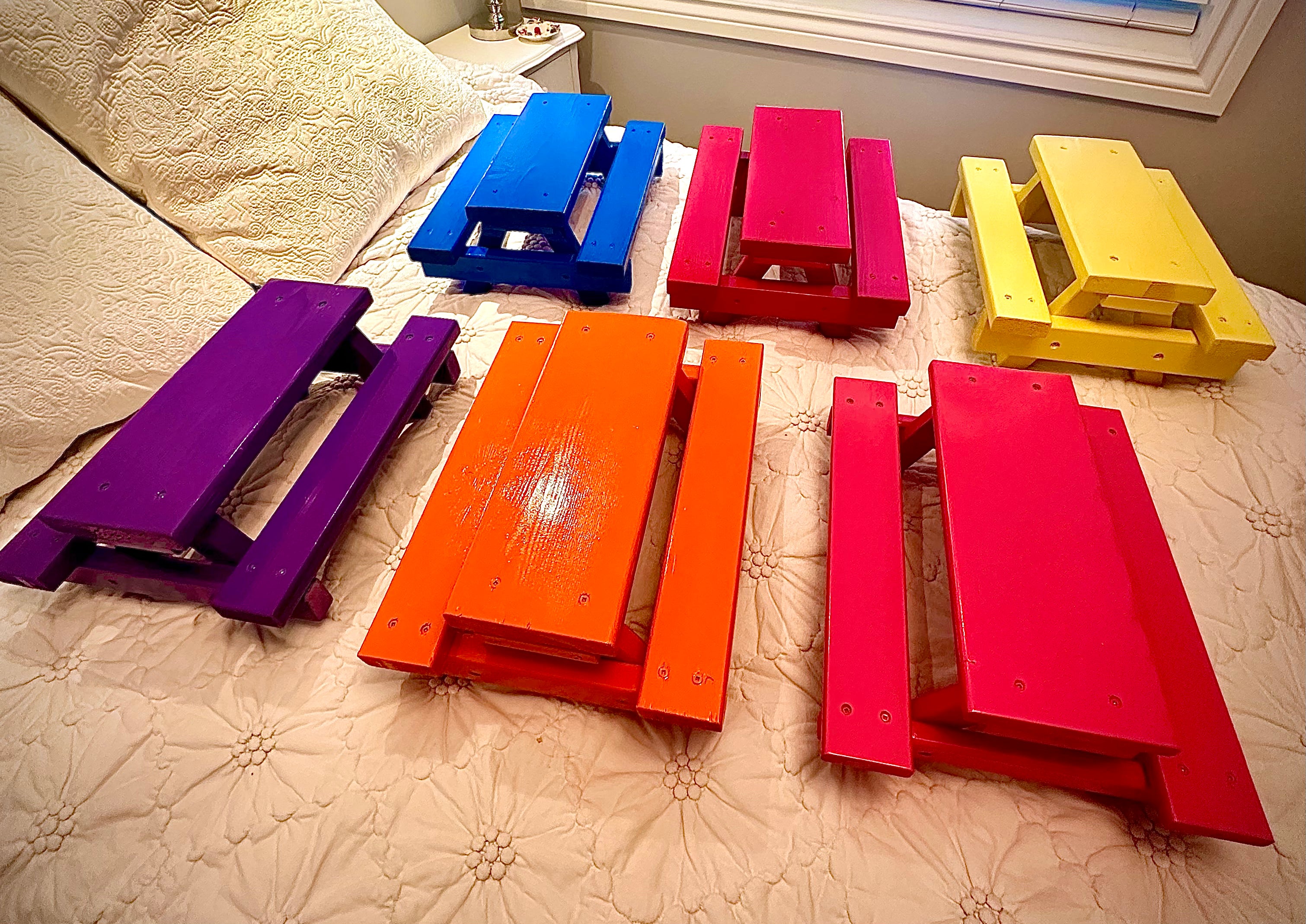 Introducing the vibrant and charming Squirrel Picnic Tables, designed to add a touch of whimsy and functionality to your garden or tree. These delightful picnic tables are crafted with meticulous attention to detail, featuring a rainbow of colours that will instantly brighten up any outdoor space. Not only do they provide a cozy spot for squirrels to enjoy their meals, but they also serve as a delightful focal point for nature enthusiasts and children alike. Made from Canadian sourced Cedar, these tables are built to withstand the elements and provide a sturdy platform for our furry friends. Elevate your garden or tree with these eye-catching Squirrel Picnic Tables and create a haven for both squirrels and human admirers to enjoy the beauty of nature together.