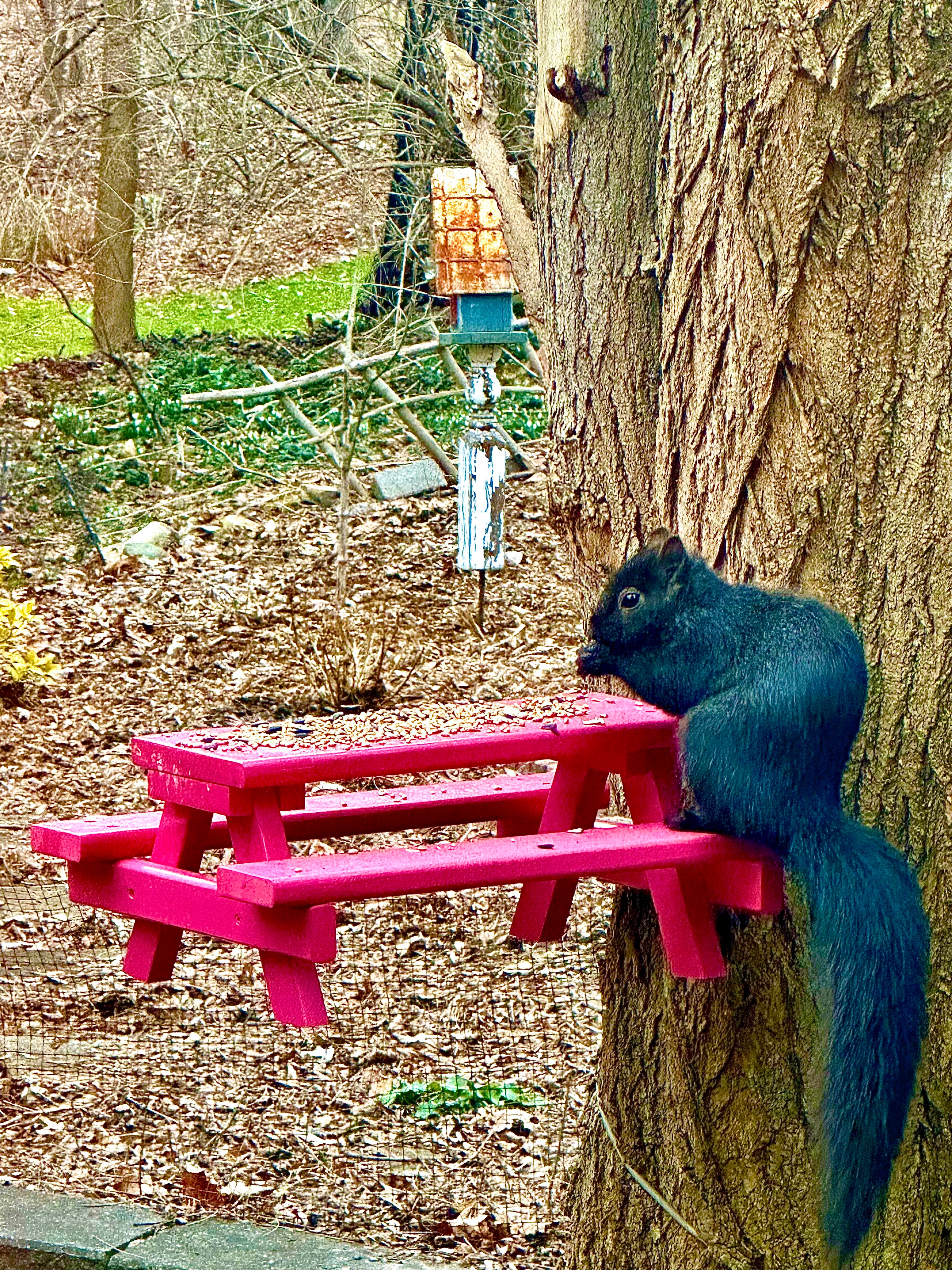 Place It On The Ground In The Garden and Watch A Black Squirrel Eat Alone in Serenity.